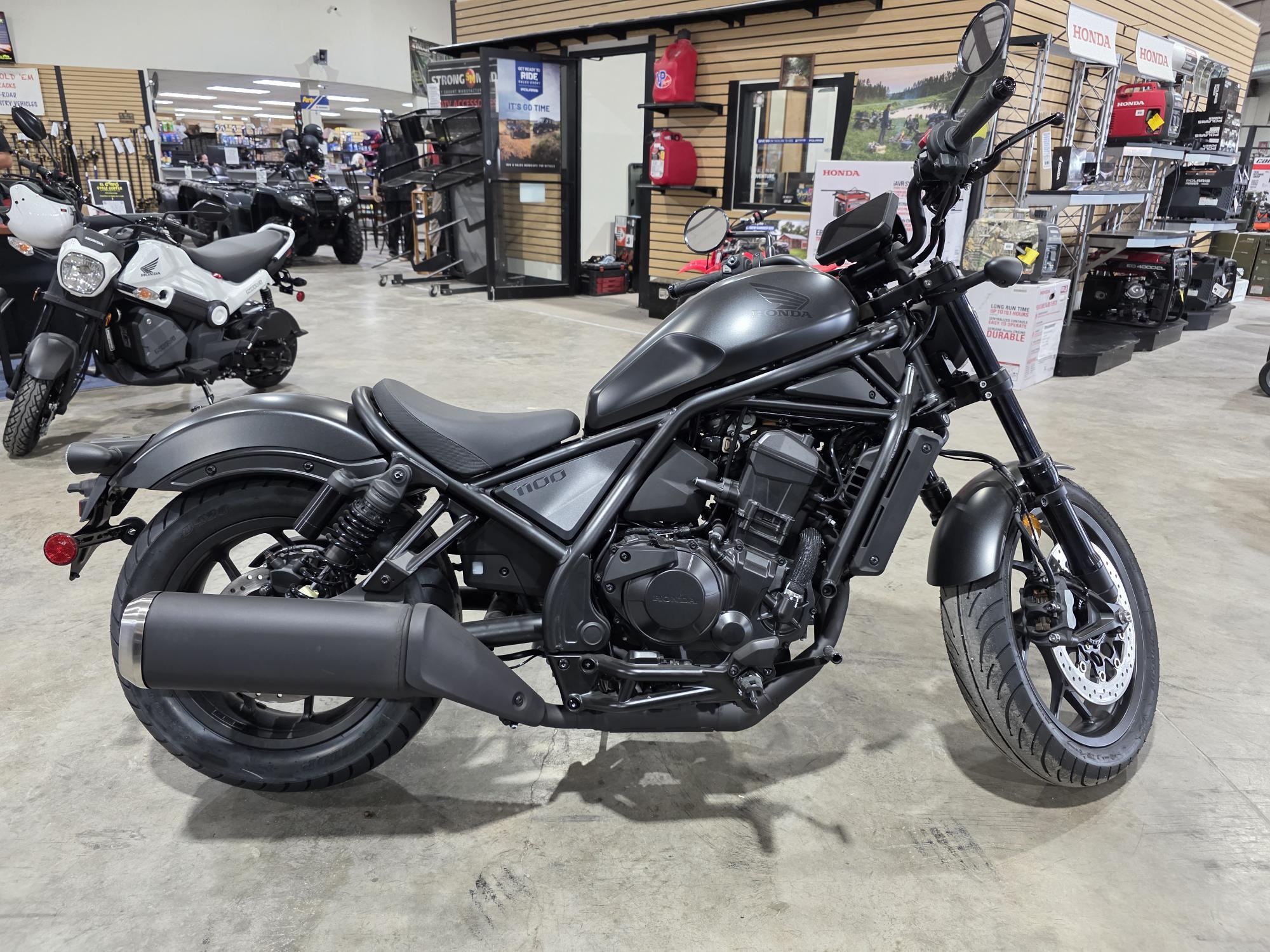 Honda's Rebel 1100 line blends power, tech, and attitude—now available in Matte Black Metallic and Matte Silver Metallic. With our legendary parallel-twin power, modern connectivity, and blacked-out style, it’s your ticket to stylish freedom. Standard models offer manual or DCT transmissions, while the SE elevates the ride with factory-custom paint and premium details.